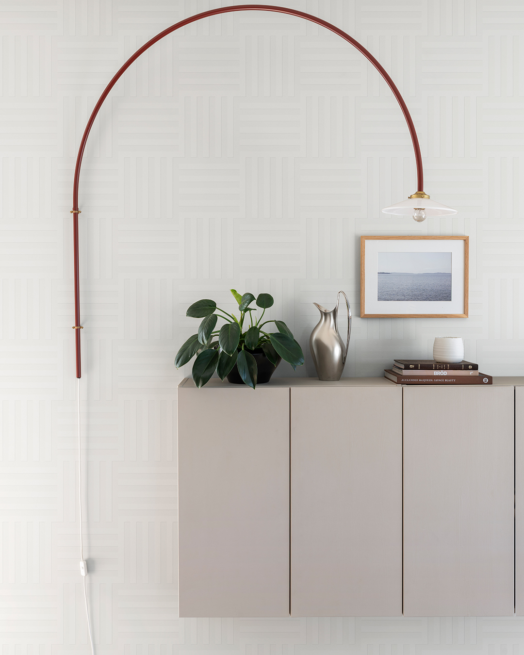 Like a quiet network of boulevards and parallel avenues, the lines spread across the surface in a white, tone-on-tone composition with a gently raised texture. At first glance, it is almost invisible, but the longer the eye lingers, the clearer the map of order begins to emerge. The light colour palette allows the structure to speak softly. Shadows and raised lines create a subtle depth, as if the pattern were embossed into the wall rather than printed upon it. The contrasts are gentle, almost whispering, giving the room a refined and architectural character.