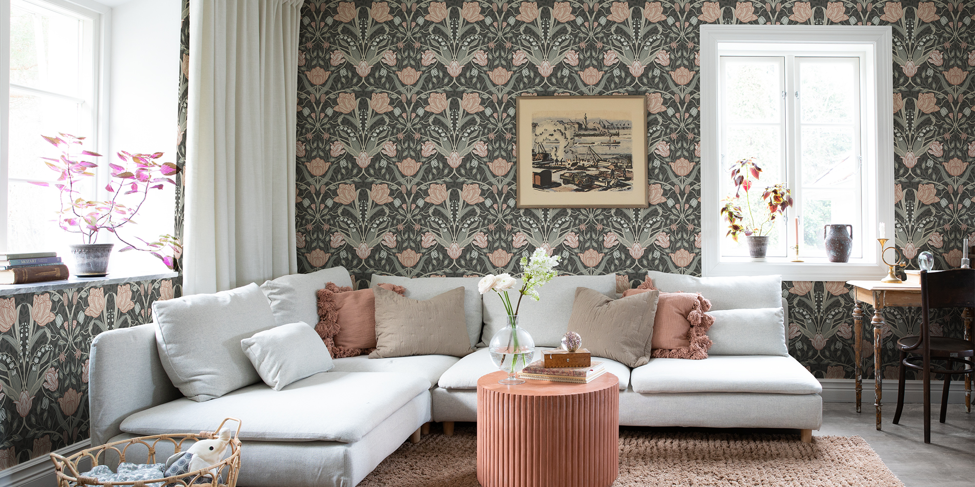 Om du ska våga ta ut svängarna i något rum så är det vardagsrummet. Här får väggarna gärna kännas lekfulla på ett sätt som passar din personlighet. Vardagsrummet är ett av de rum som vi umgås mest i med varandra och får gärna kännas trivsamt och ombonat. Stormönstrade tapeter ger ofta en mysig och omfamnande känsla i ett rum.
