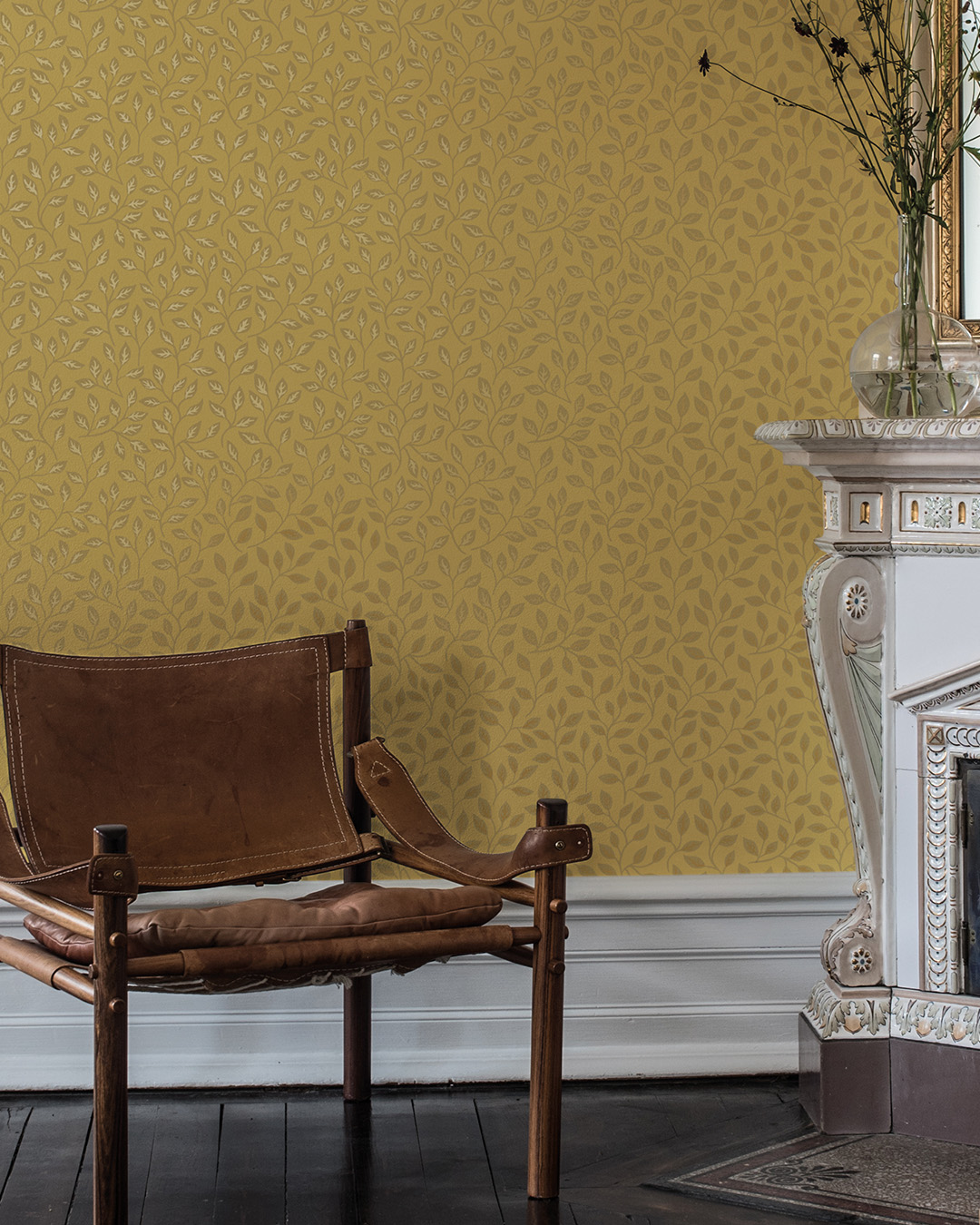 Apelkvist i en klassisk lejongul färgställning få dina väggar att kännas ombonade. Apelkvist är en trivsam tapet som ger rummet en lyxig atmosfär. Ett skimrande bladmönster i grått och guld skapar vackra detaljer på dina väggar. Är detta tapeten du alltid drömt om?