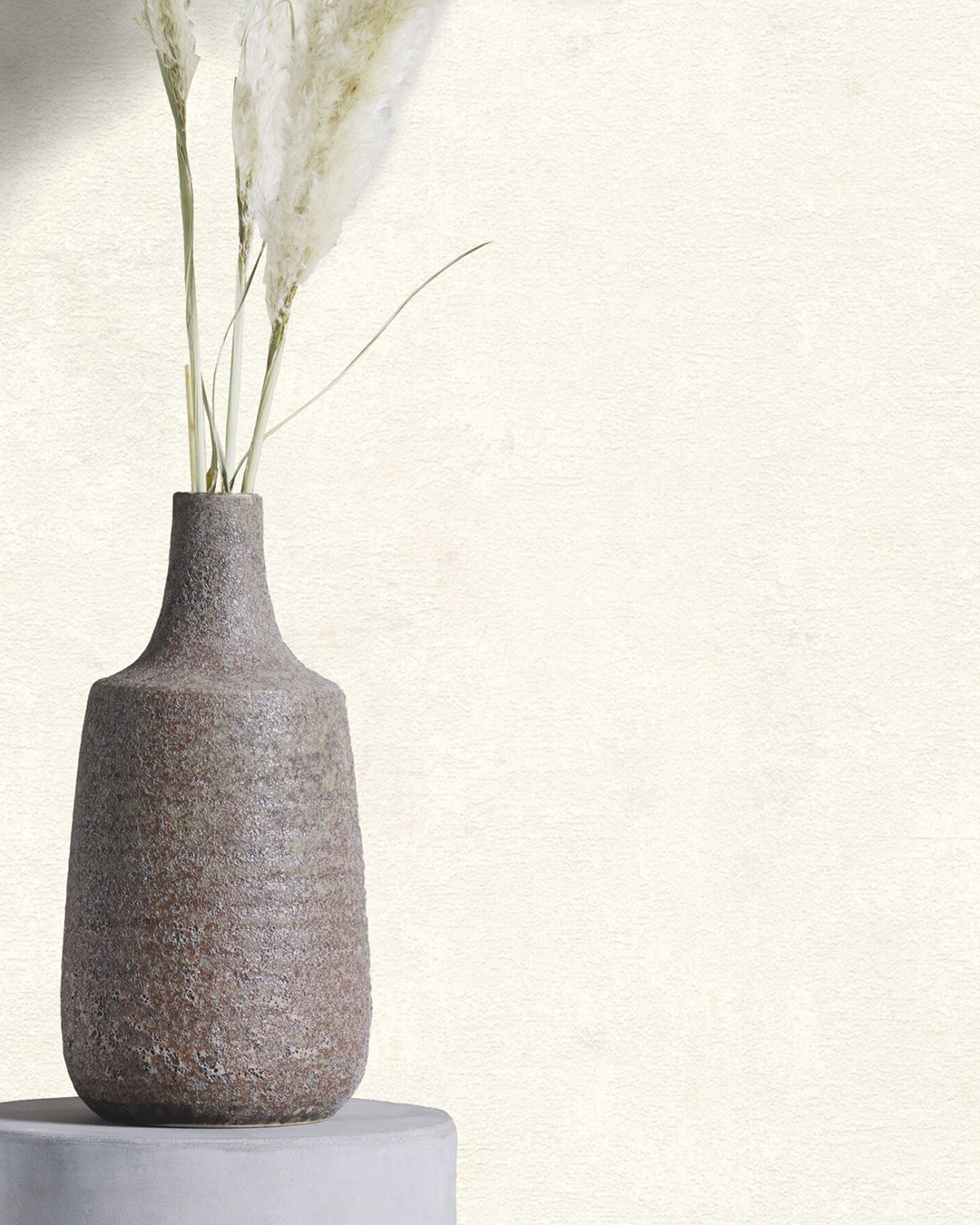 Beige tapet med en mjuk, lätt melerad yta som ger ett lugnt och varmt intryck.