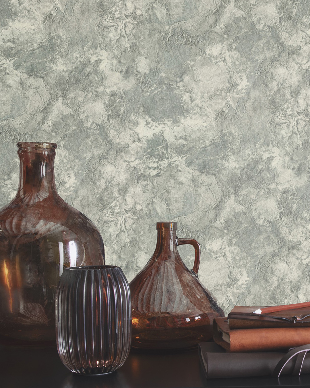 Grå tapet med ett levande marmormönster i mjuka skiftningar som skapar ett stilrent och exklusivt intryck.