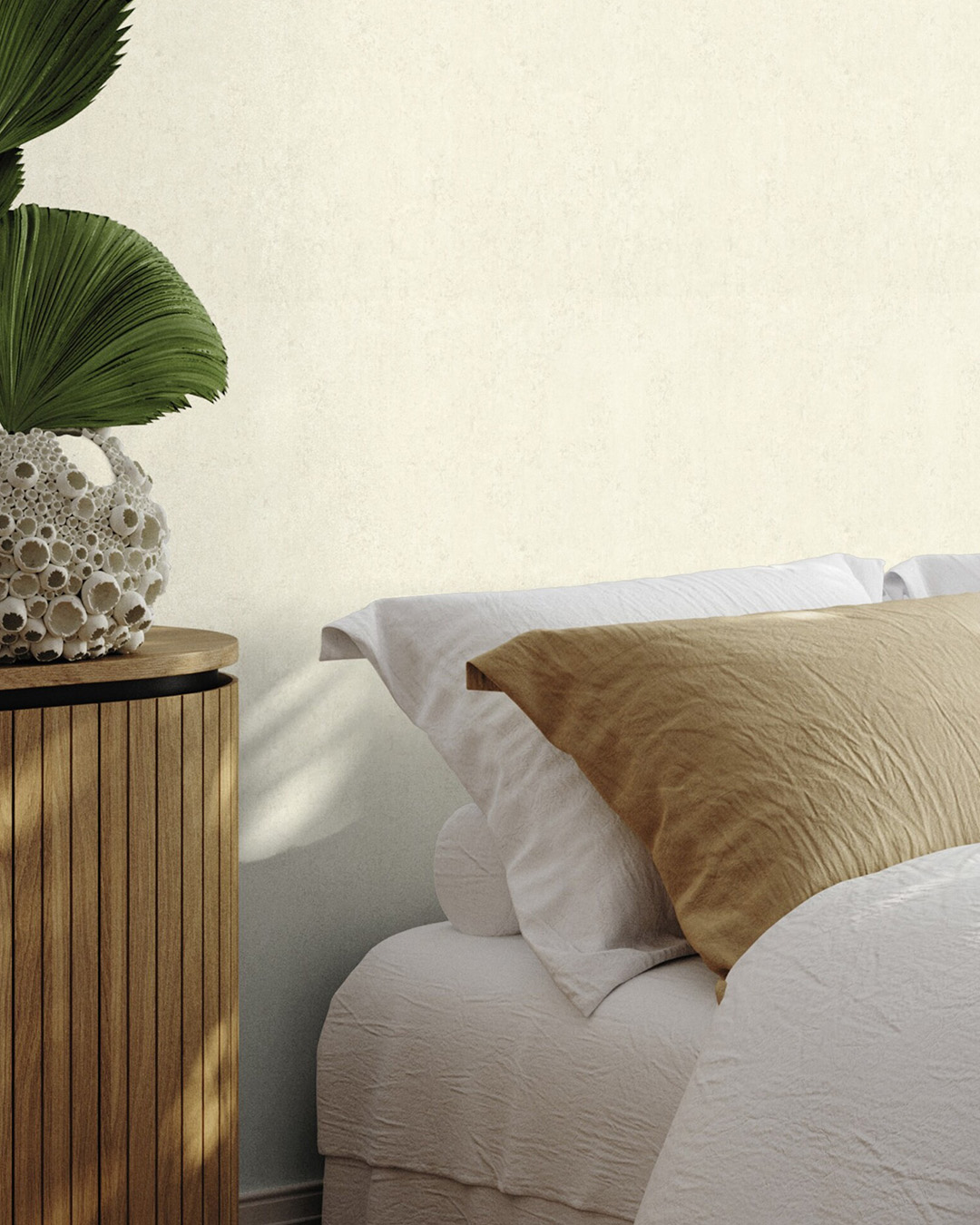 Beige tapet med en mjuk, diskret struktur som ger en lugn och varm känsla med ett lätt levande uttryck.