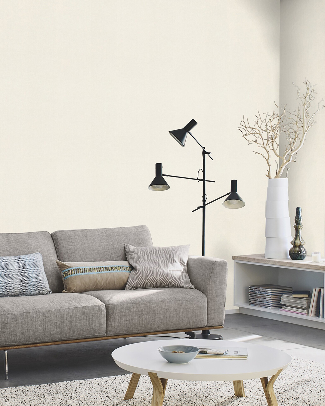 Vit tapet är ett säkert val, du skapar spelrum för inredningen att skina. Kanske matchar du din med en färgsprakande soffa? Hur som så är en vit tapet ett optimalt val då den tillför en textur som väggfärg inte kan. I detta fall har tapeten en lätt canvas textur som ser till att känslan blir ombonad och varm.