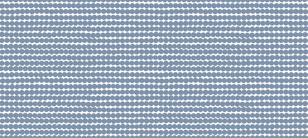 Tapet Räsymatto i gråblått och vitt är en stillsam och luftig tolkning av Marimekkos klassiska mönster. De runda formerna radas upp i ett enkelt, men levande mönster, inspirerat av vardagliga textilier och handens arbete. I den här färgsättningen möts svalt gråblå och krispigt vitt i en subtil kontrast som ger rummet ett lugnt och friskt uttryck. Den gråblå tonen påminner om disiga morgnar eller skymningsljus sval men aldrig kall medan vitt ger lätthet och andrum. Det är en tapet som ger väggen ett behagligt djup utan att ta över rummet.