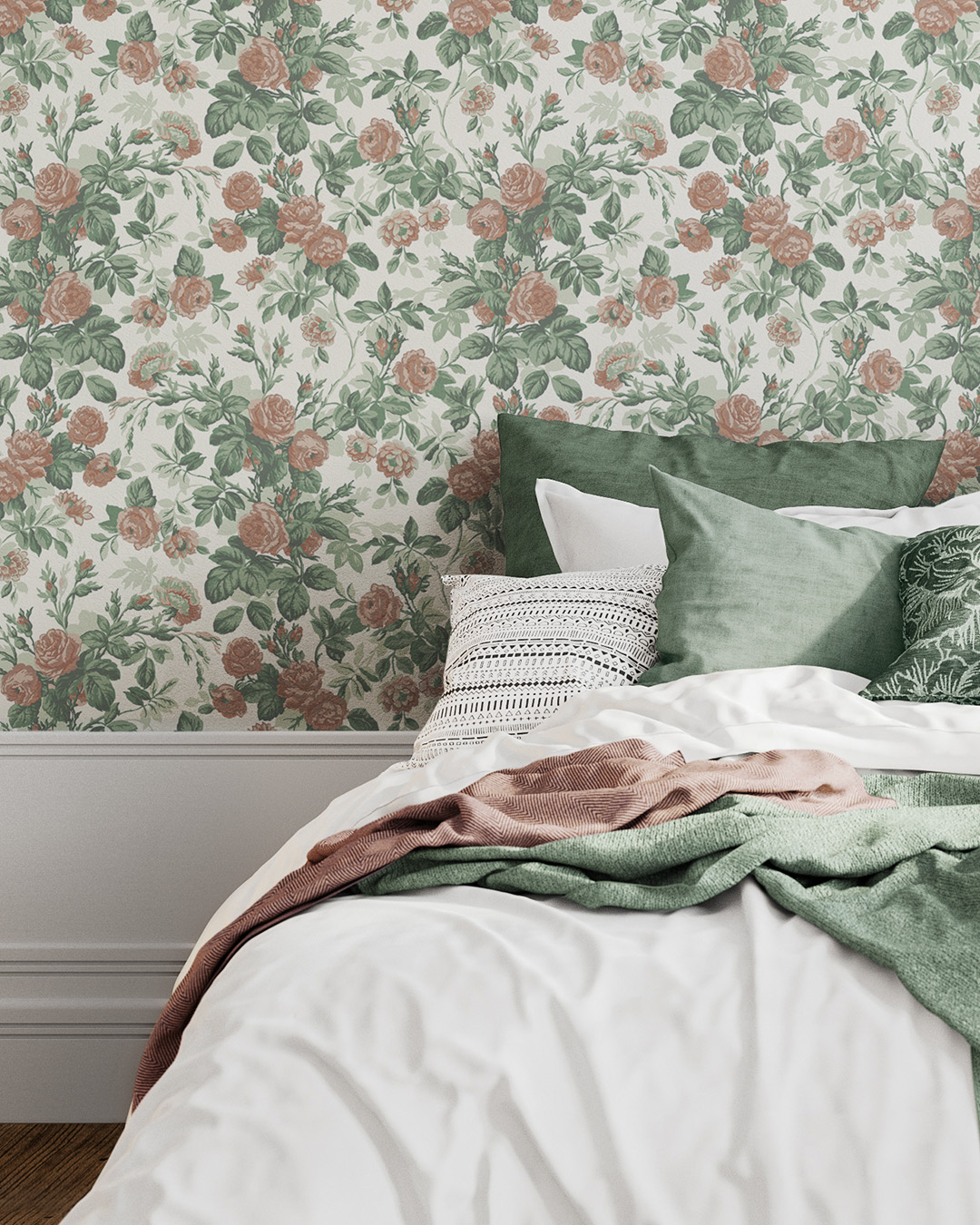 Klä dina väggar i en vacker skrud av rosor. På en vit botten i tapeten Rosdalen förgrenar sig roskvistarna i olika rosa och gröna nyanser. De växer hit och dit och åt alla håll, precis som i den vilda naturen. Och precis som rosens ljuva doft sprider sig genom luften så sprider Rosdalen en hemtrevlig och gemytlig atmosfär i hemmet.
