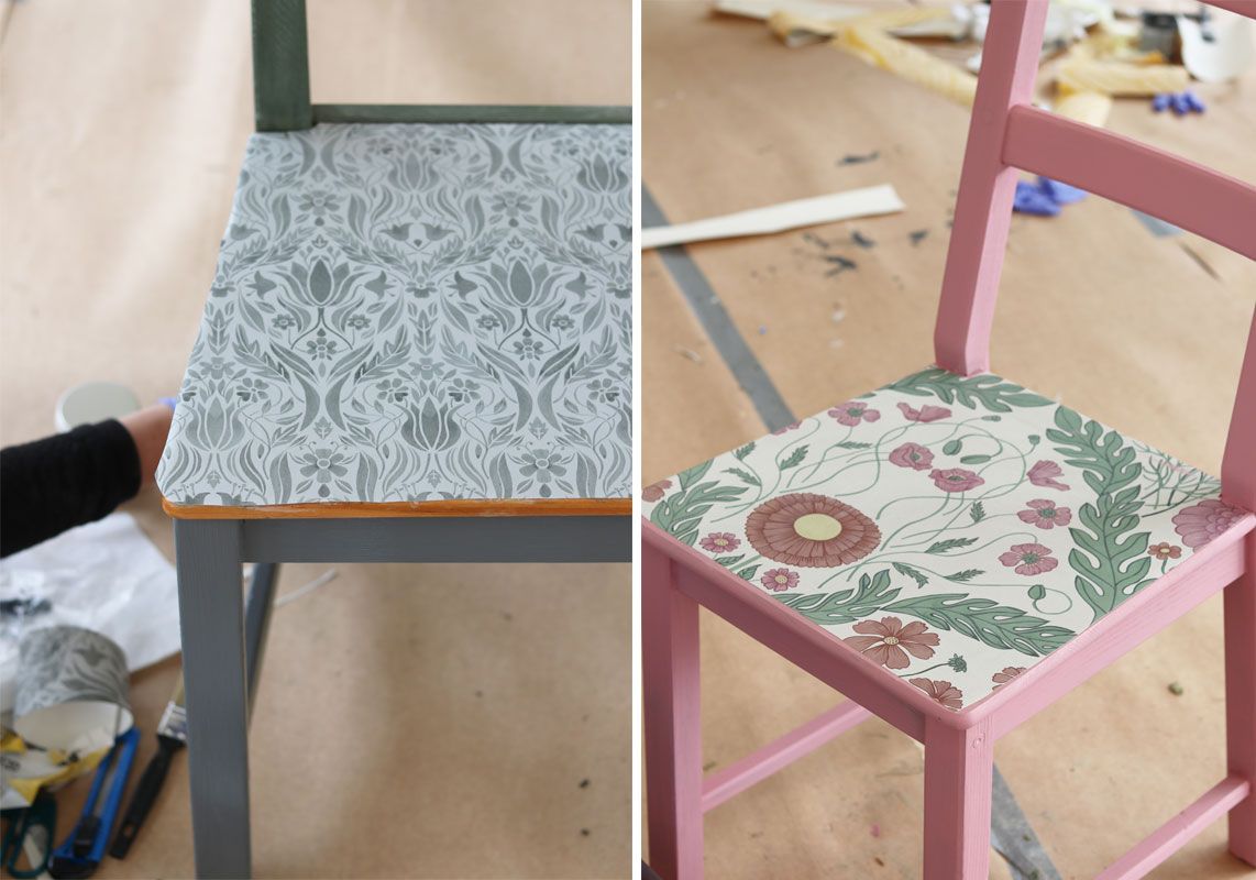 Kreativa Karin driver Instagramkontot @kreativkarin och är en riktig proffspysslare. De här slitna stolarna ska snyggas till med hjälp av färg, tapeter och annan fin dekoration och Karin tipsar här om hur du enklast går till väga!